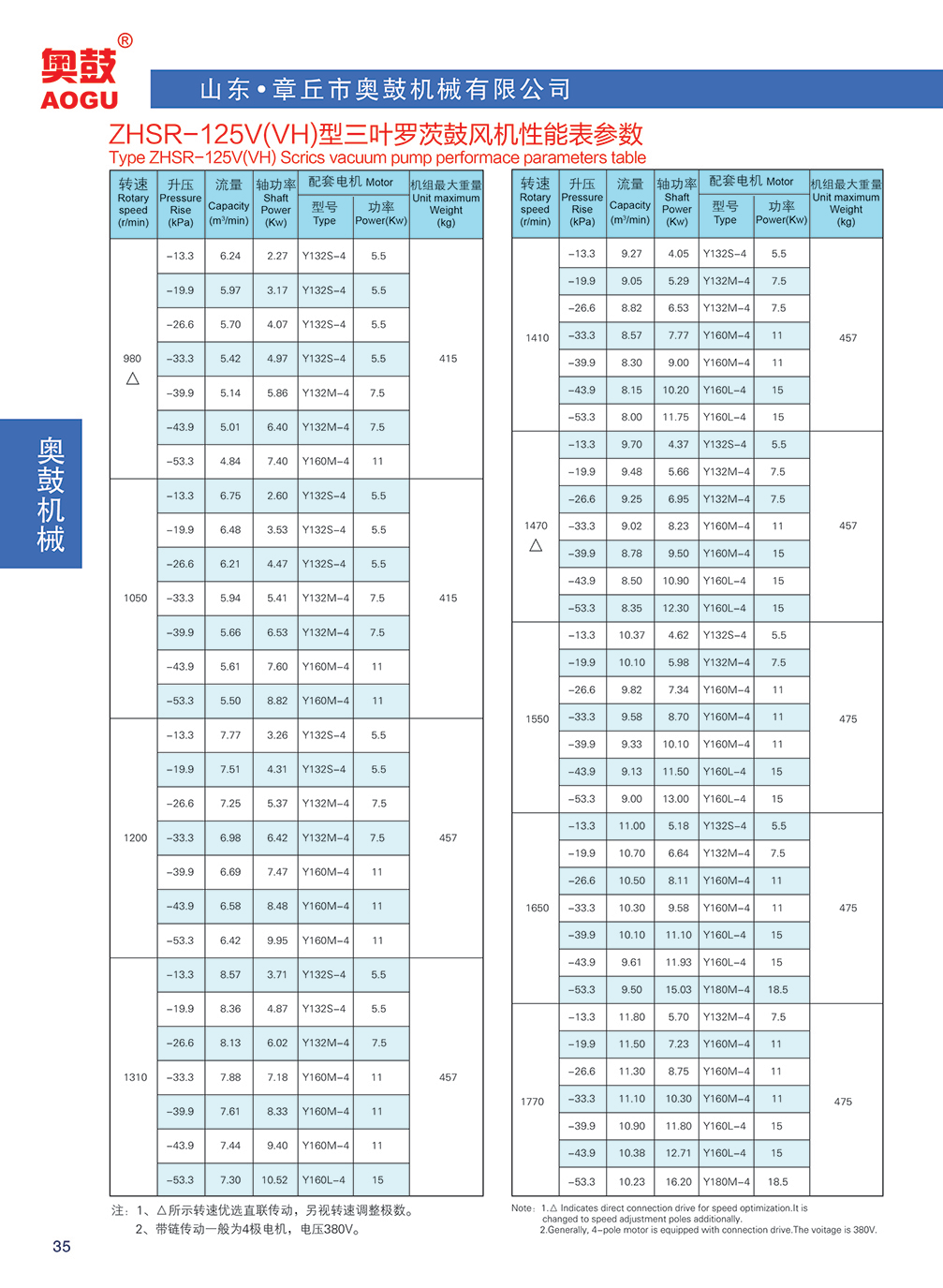 山東省章丘市奧鼓機械有限公司坐落于環境優美的山東章丘市相公鎮。我公司是專業生產三葉羅茨鼓風機的專業企業,企業技術力量 強大,擁有一大批高素質專業隊伍及生產技術人員,具有強大的技術開發、設計、生產和質量監控能力。并建立了完善的售后服務管理體系。 公司主導產品ZHSR系列三葉羅茨鼓風機。引進吸收國內外三葉羅茨 鼓風機先進技術,運用先進的CAD/CAM輔助設計,自行研發并專業精 工生產的高品質、低噪音、新一代高效節能產品。該產品具有結構合理、體積小、升壓高、風量大、噪音低、運行平穩、性能優良、使用壽命長、維修簡便等特點。已經被廣泛適用于污水處理、水產養殖、 真空包裝、助燃、增壓、鑄造、礦山、冶金、化工、輕工、建材、電力、面粉、 真空等等領域。 公司主導的產品型號有:ZHSR50、ZHSR65、ZHSR80、ZHSR100、ZHSR125、ZHSR150、ZHSR175、ZHSR200、ZHSR250、ZHSR300等型號。